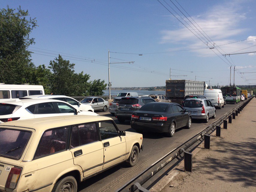 Сегодня, 17 июля, в Николаеве на Ингульском мосту образовалась пробка.