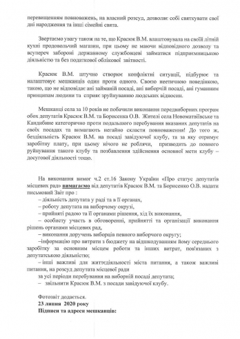 Жители сел требуют получения письменного отчета о профессиональной деятельности депутатов, а также увольнения Веры Красюк с должности заведующей клуба.