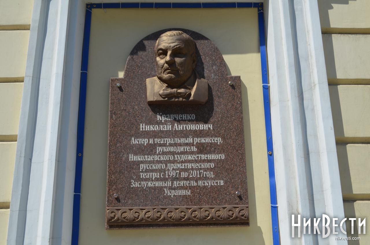 Как известно, мемориальную доску заслуженному деятелю искусств Украины, Почетному гражданину Николаева, депутату Николаевского областного совета трех созывов, директору Николаевского академического художественного русского драматического театра Николаю Кравченко установили в этом году, 29 июля.