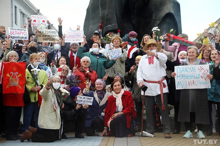 «Бабушки за вас», — в Минске пенсионеры поддержали молодежь и вышли на протест против Лукашенко