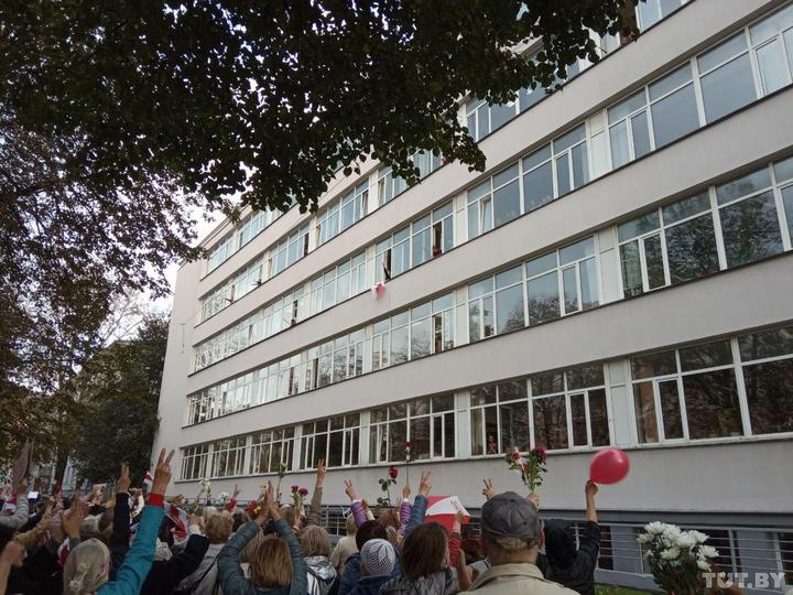 Там они скандировали лозунги «Студенты — наша гордость!» и «Бабушки за вас!».