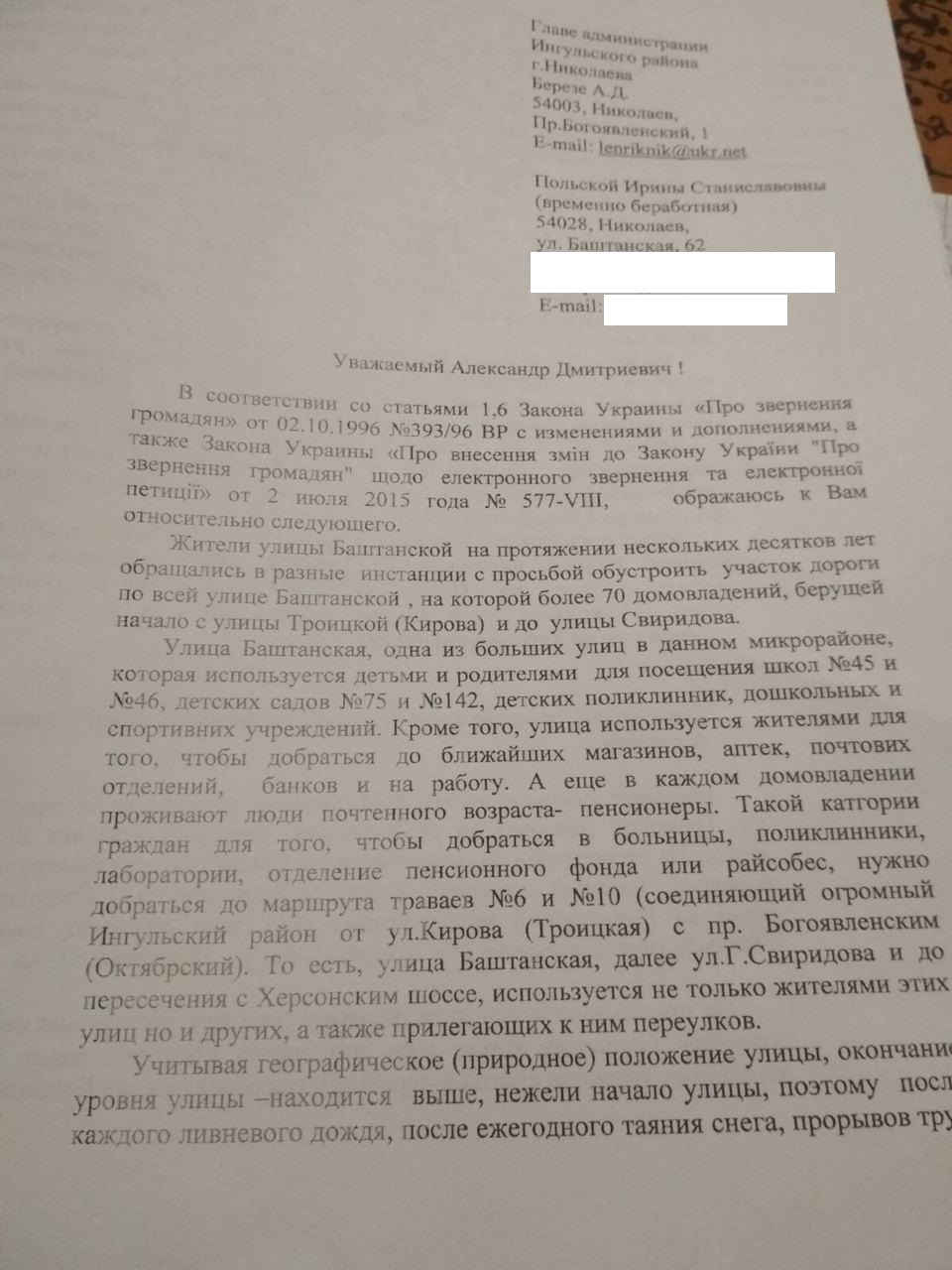 Жители улицы Баштанской в Ингульском районе 20 лет добиваются от Николаевского горсовета асфальтирования дороги.
