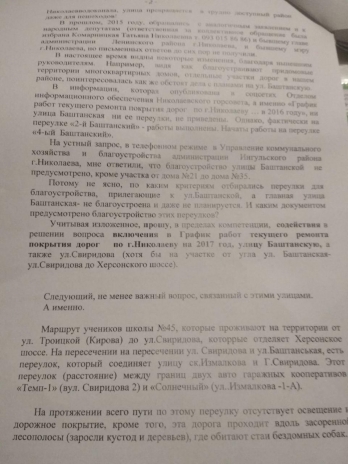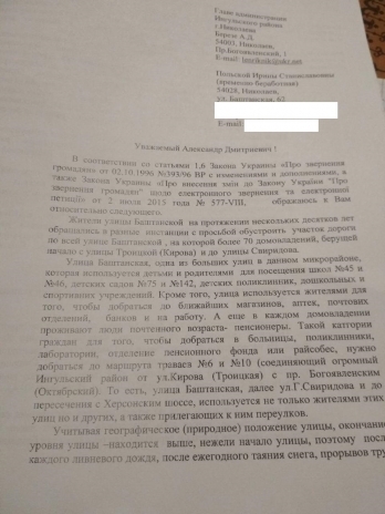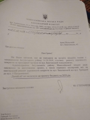 — Мы обращались и к Владимиру Чайке, и к Исакову, Гранатурову, Еропунову, Степанцу, Березе, Сенкевичу. К кому только не обращались. Несколько раз, перед очередными выборами, приезжали и подсыпали дорогу щебнем. И на этом все. В 2019 году получили ответ в горсовете, что ремонт этой дороги внесен в проект бюджета на 2020 год. Если это заложено в бюджете, значит деньги есть? Куда они тогда ушли? — отмечает Светлана.