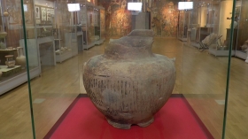 Научные сотрудники и археологи предполагают, что такая емкость могла служить для вина. Ее объем около 16 литров.