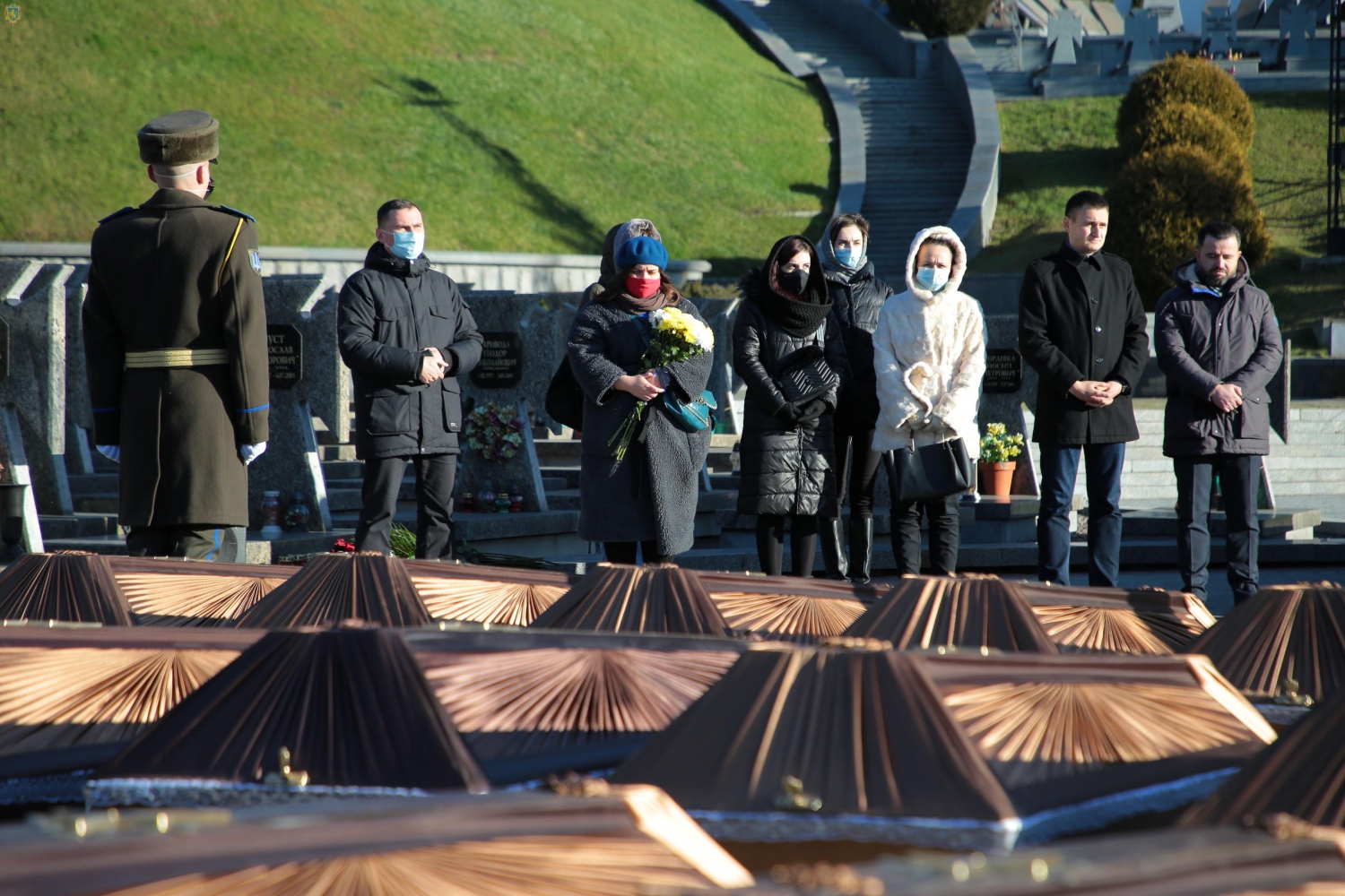 Присутствующие почтили память погибших возложением цветов и свечей к месту захоронения и исполнили Государственный Гимн Украины. Также состоялась гражданская панихида.
