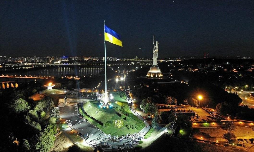 Главный флаг Украины, установленный в Киеве, второй раз за несколько дней приспустили через ветреную погоду до улучшения погодных условий.