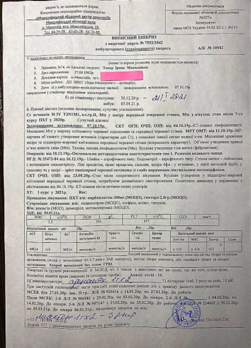 Жительница Николаева, которая борется с онкологическим заболеванием, нуждается в помощи