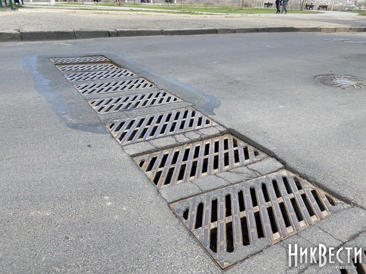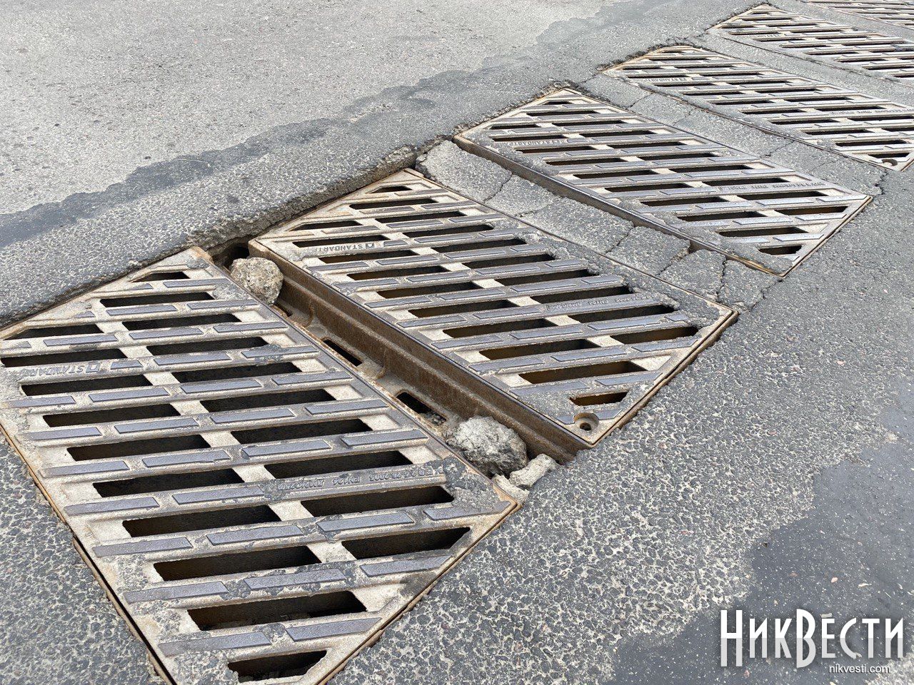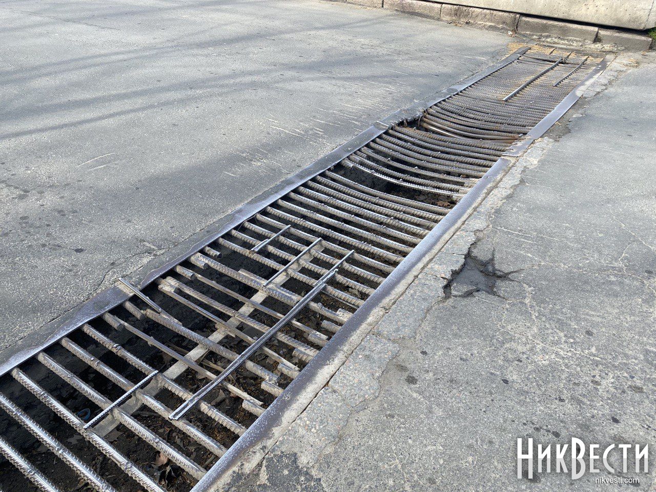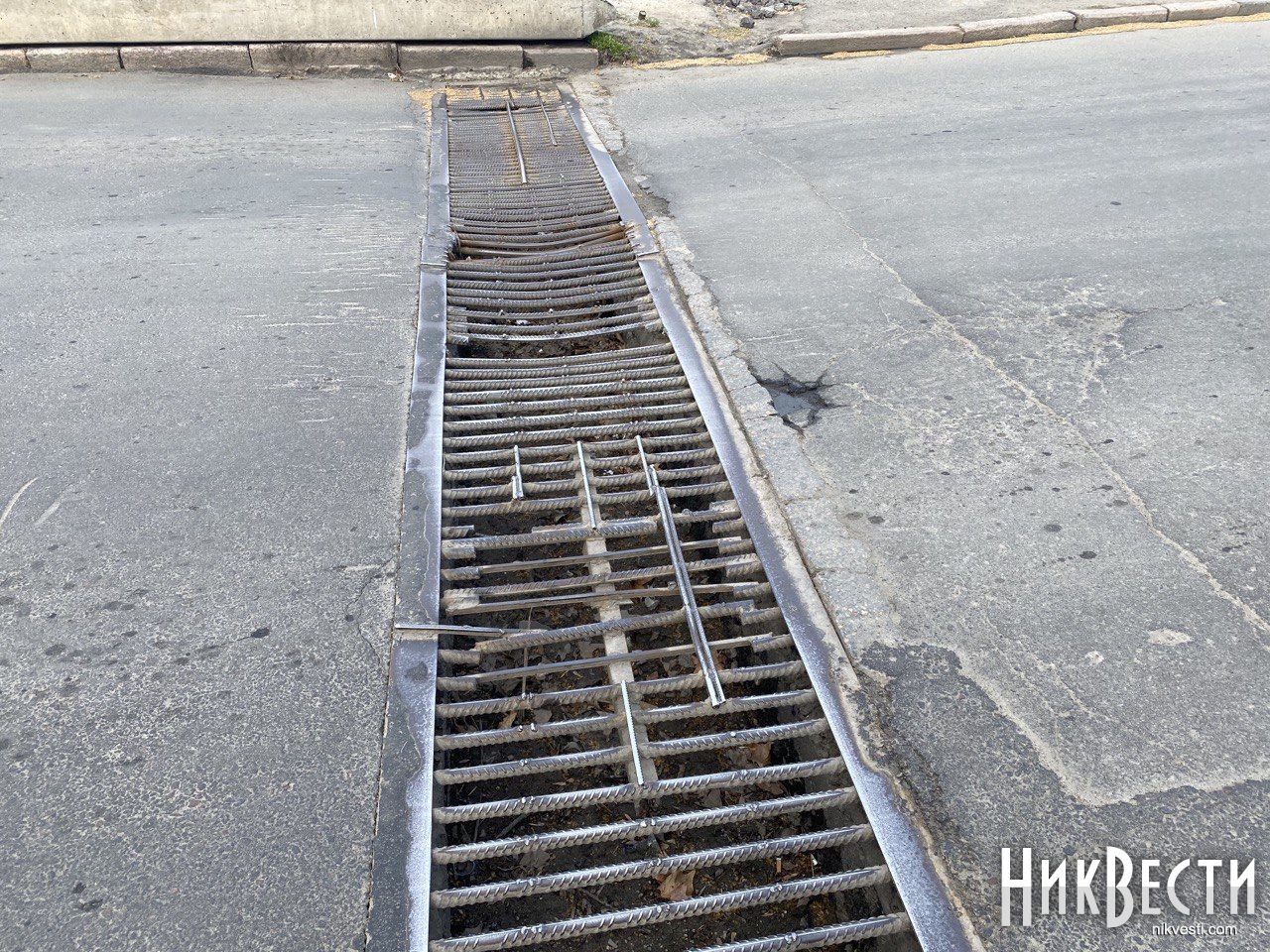 Ливневки, которые расположены на ширину дороги на Набережной в Николаеве, которые ремонтировали два года назад, снова нуждаются в починке.