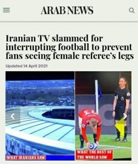 Иранское ТВ вырезало женщину-арбитра, чтобы не демонстрировать ее ноги