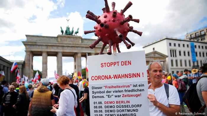Большая часть этих «протестующих» показательно не носит масок и не соблюдает меры дистанцирования. Некоторые осуждают «диктатуру», якобы навязанную борьбой с эпидемическими волнами, другие ставят под сомнение само существование вируса. Берлин считает, что эти «вольнодумцы» распространяют, среди прочего, «заговорщические мифы, такие как QAnon», движение, которое зародилось в Соединенных Штатах, или «другие антисемитские настроения». Власти Германии утверждают, что все чаще эти протесты используются для провокации столкновений. Организаторы этих демонстраций «отчасти ясно показывают, что их программа выходит за рамки простой мобилизации в знак протеста против» ограничительных мер.