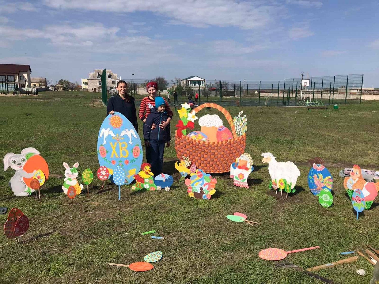 На детской площадке микрорайона Терновка оформили пасхальную фотозону.