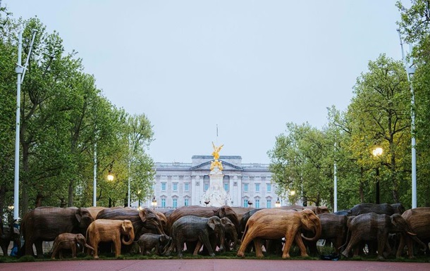 К Букингемскому дворцу «пригнали» стадо деревянных слонов