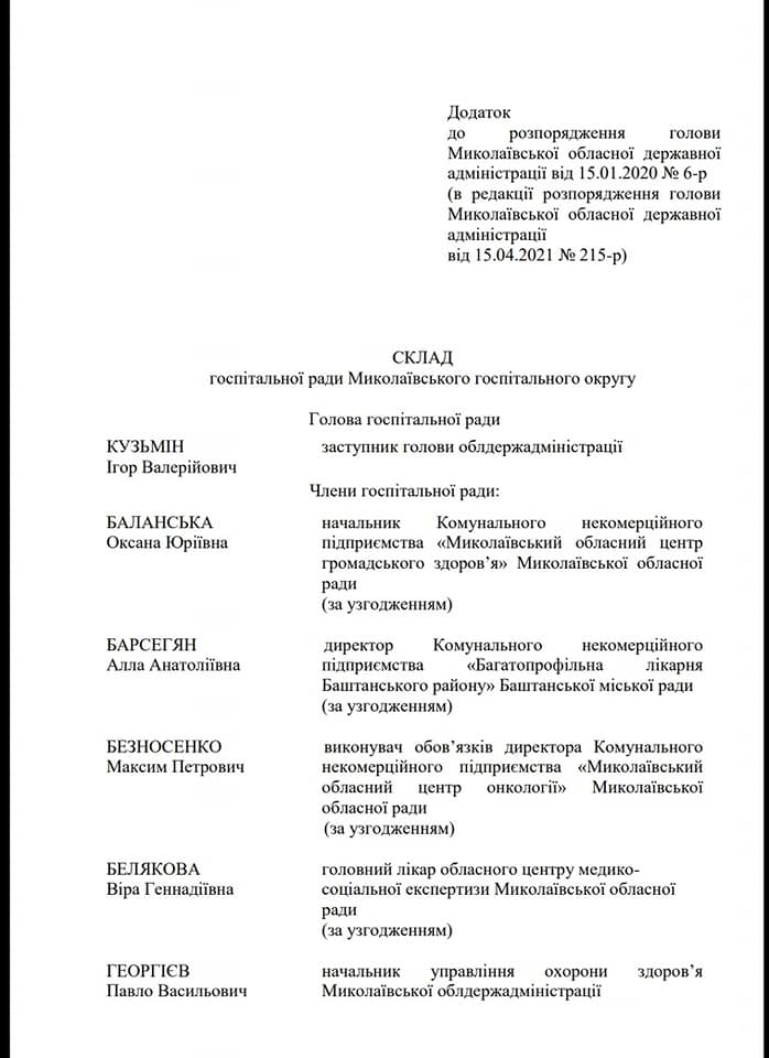 Николаевская облгосадминистрация утвердила новый состав госпитального совета в субботу, 15 мая. Среди членов совета нет двух представителей общественности, как того требует законодательство.