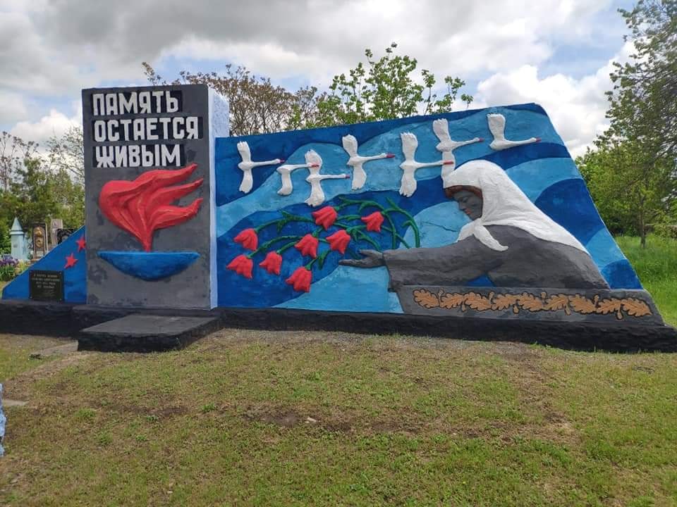 Жители села Павловка Снигиревского района силами общины выполнили косметический ремонт стелы на сельском кладбище.