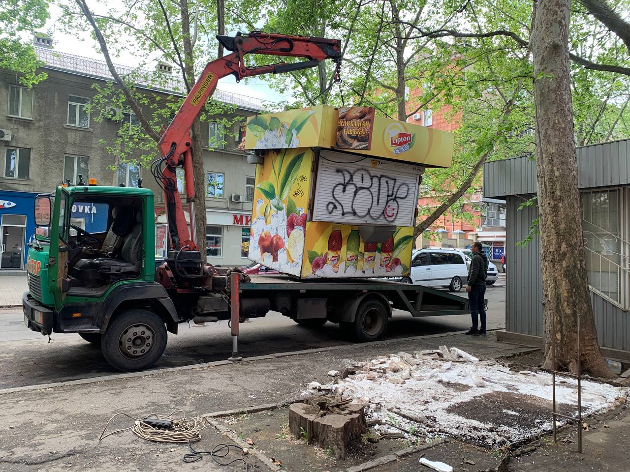 По улице Спасской в Центральном районе Николаева демонтируют незаконный киоск.