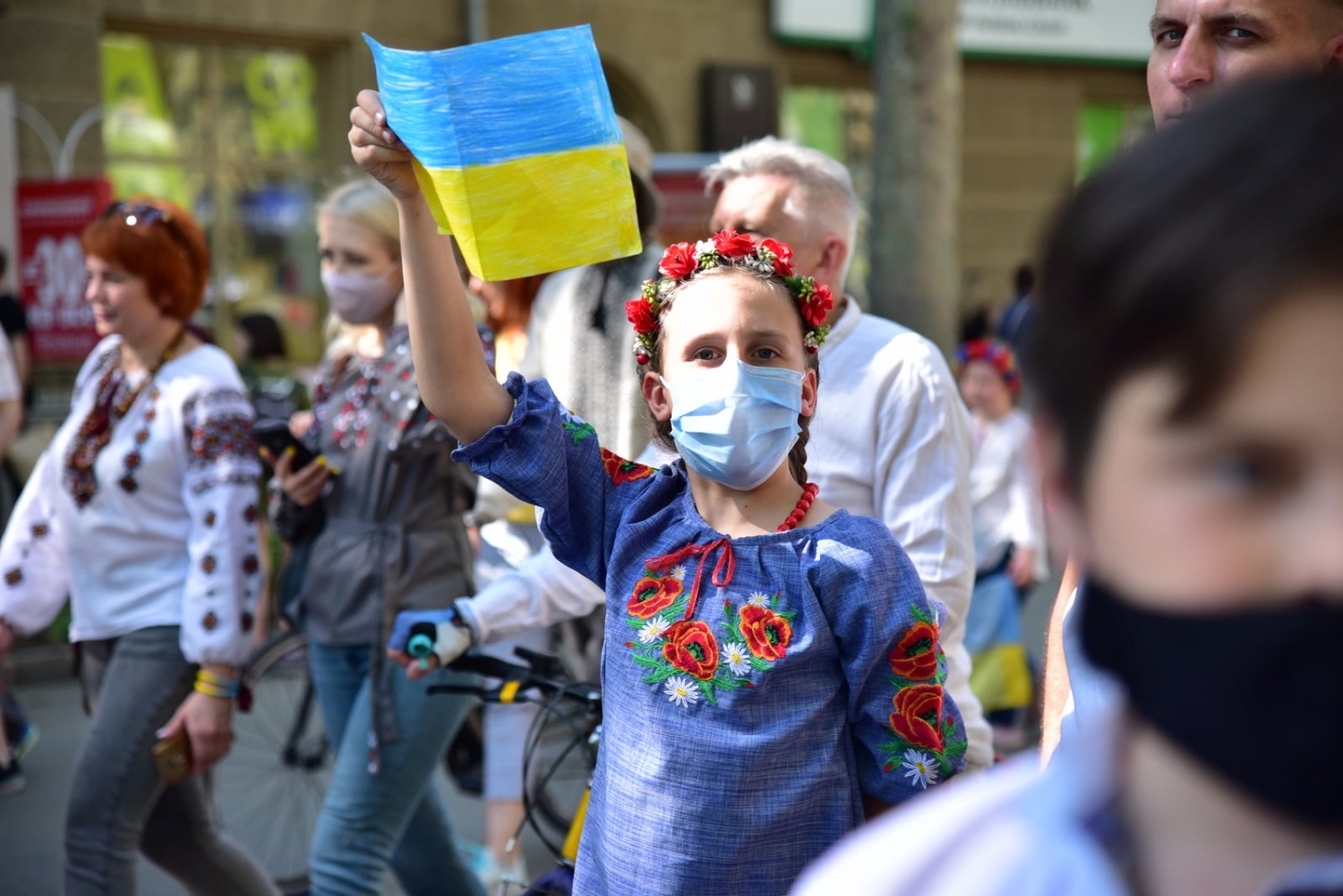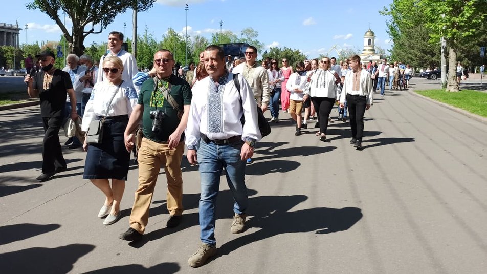 Вчера, 23 мая около ста горожан в вышиванках прошли маршем по центру города.