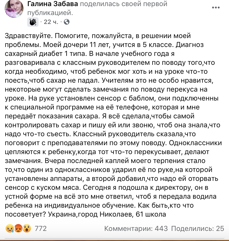 Жительница Николаева пожаловалась на буллинг в школе — ее 11-летнюю дочь обижают из-за сахарного диабета