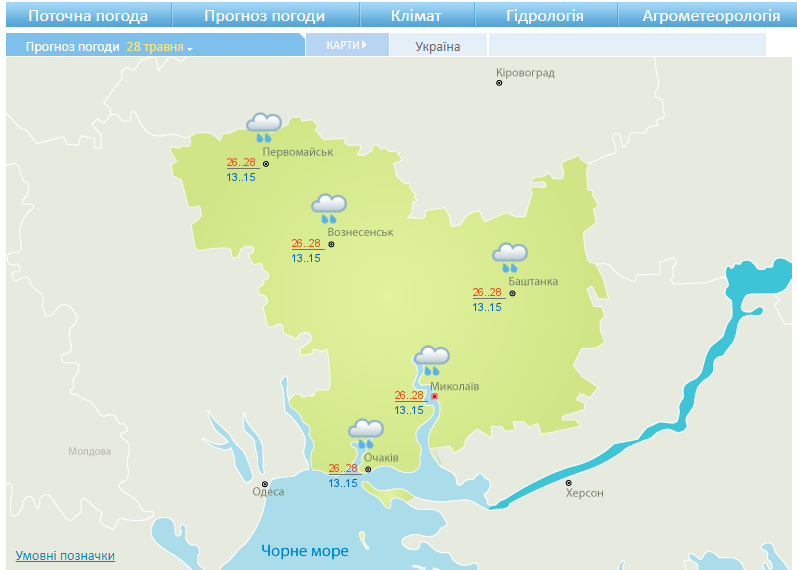 В пятницу, 28 мая, в Николаеве будет дождливая погода.
