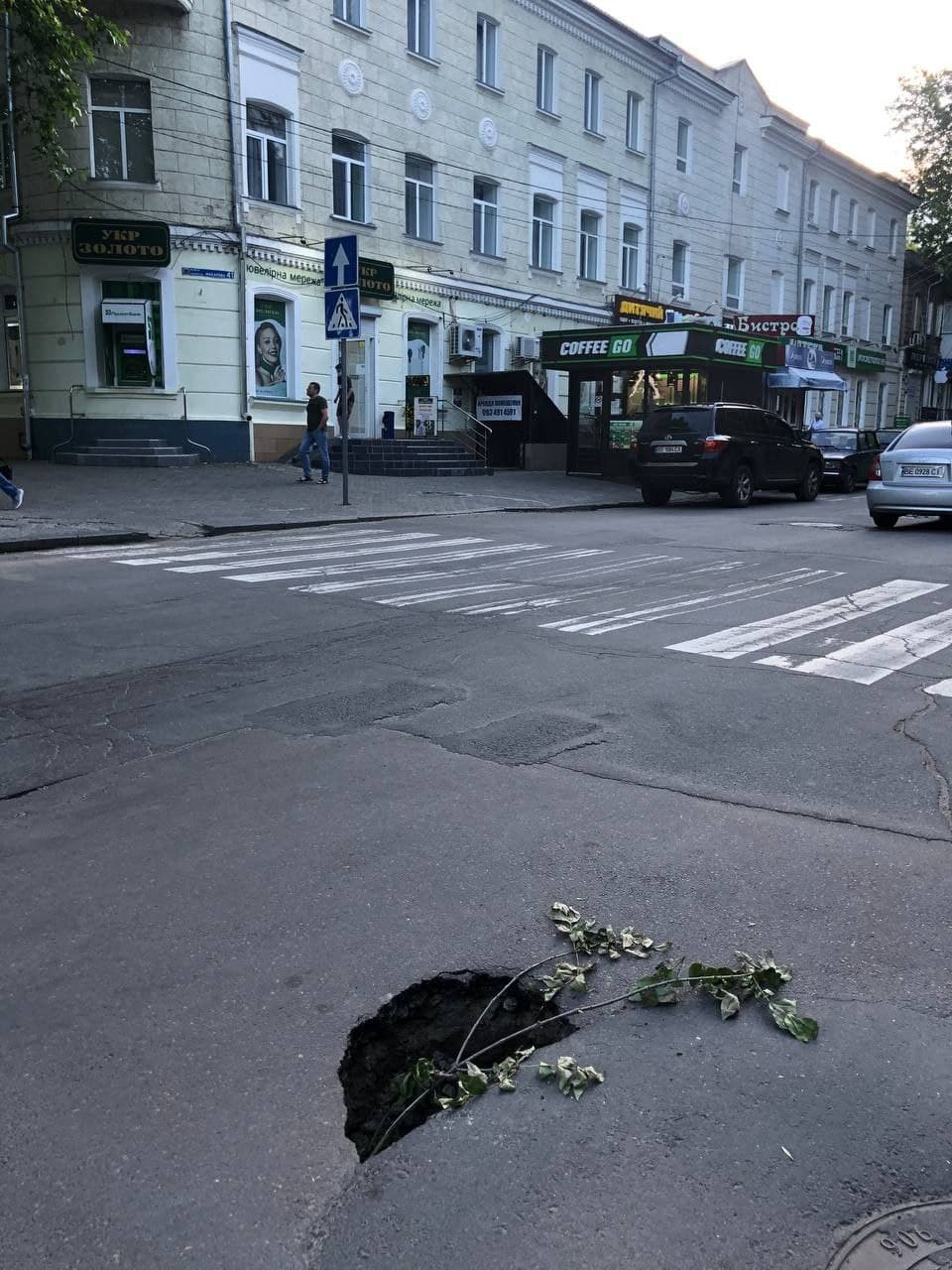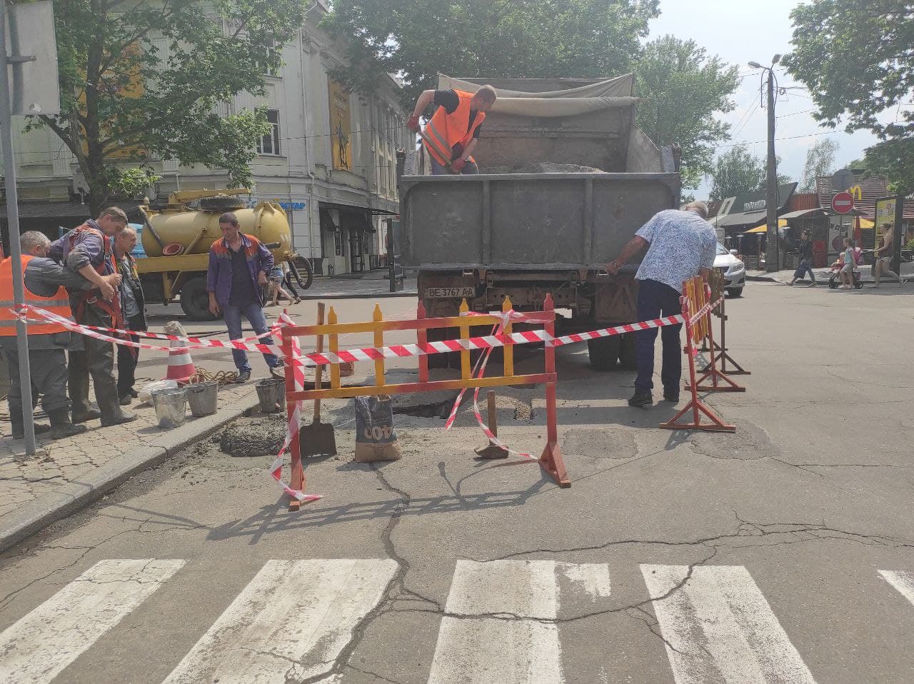 В центре Николаева, на улице Соборной, напротив магазина «Киевстар» городские коммунальщики отремонтировали провал на асфальте.