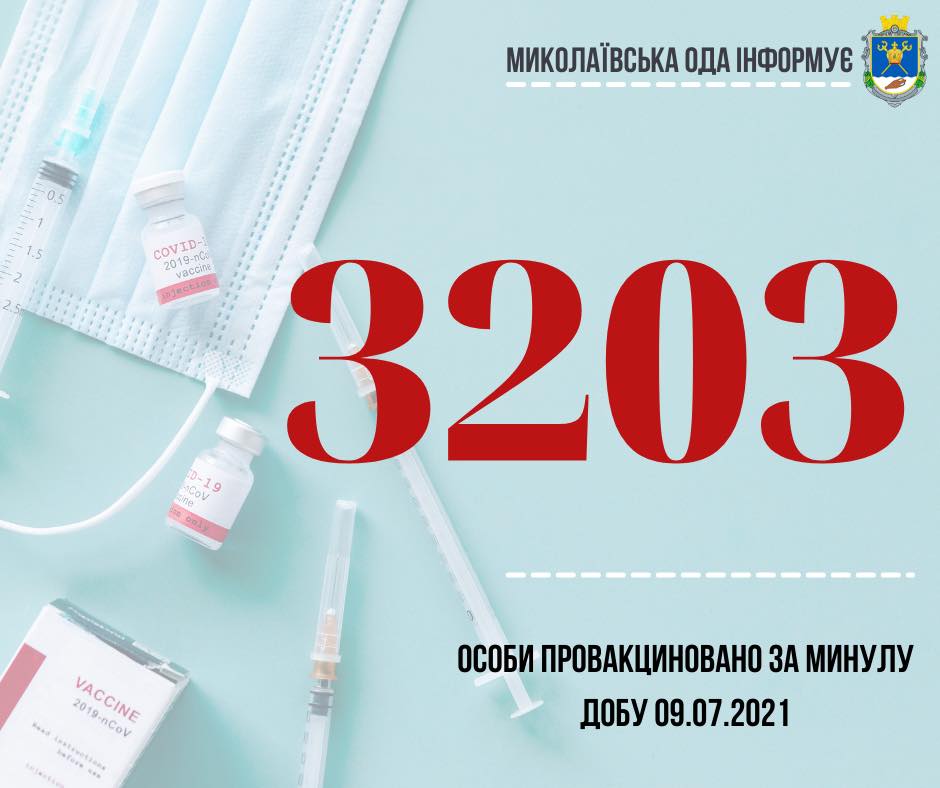 В Николаевской области за минувшие сутки, 9 июля, от COVID-19 вакцинировали 3203 человека.