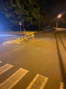 На углу улиц Лягина и Защука в Заводском районе Николаева спустя полгода после ремонтных работ так и не ликвидировали яму на проезжей части. Она ограждена деревянным забором, сквозь насыпь песка проросла трава.