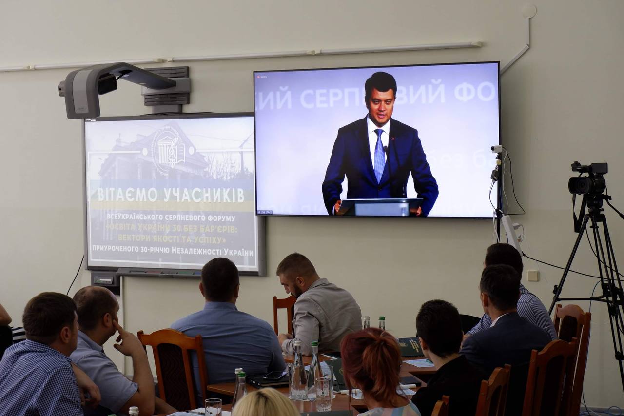 Присоединились к участию в форуме с помощью онлайн-связи Министр образования и науки Украины Сергей Шкарлет, который от имени Президента Украины Владимира Зеленского поздравил участников мероприятия и Председатель Верховной Рады Украины Дмитрий Разумков.