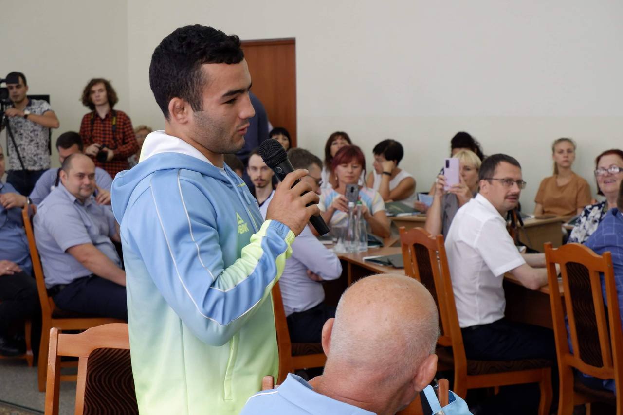 Во время приветственного слова Виталий Ким отметил, что образованное общество - это всегда залог прогресса. Глава области отметил, что любые вызовы в образовании, которые сейчас перед нами стоят, можно решить, если есть три составляющие: деньги, человеческий ресурс и время. Также Виталий Ким искренне поздравил присутствовавшего на мероприятии серебряного призера Олимпиады в Токио Парвиза Насибова и поблагодарил его тренера Николая Салеева.