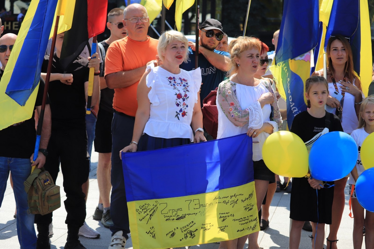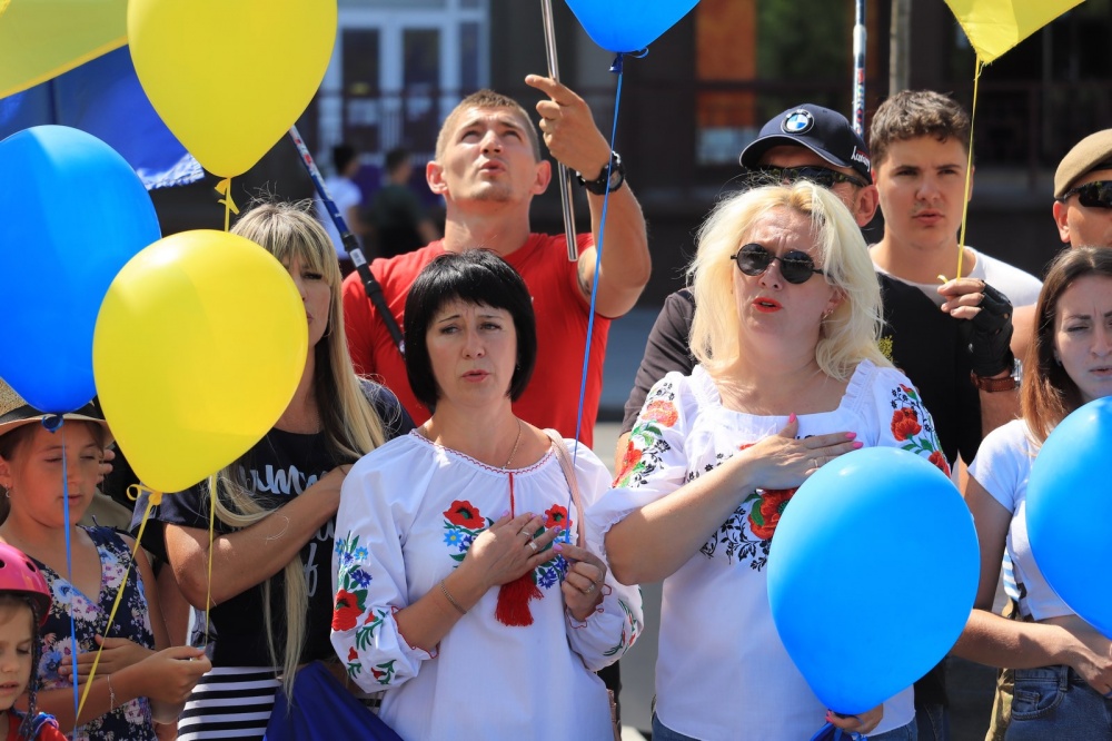 Завершился автопробег возле Соборной Площади. Там участники торжественно спели гимн Украины и выпустили в небо сине-желтые воздушные шары.