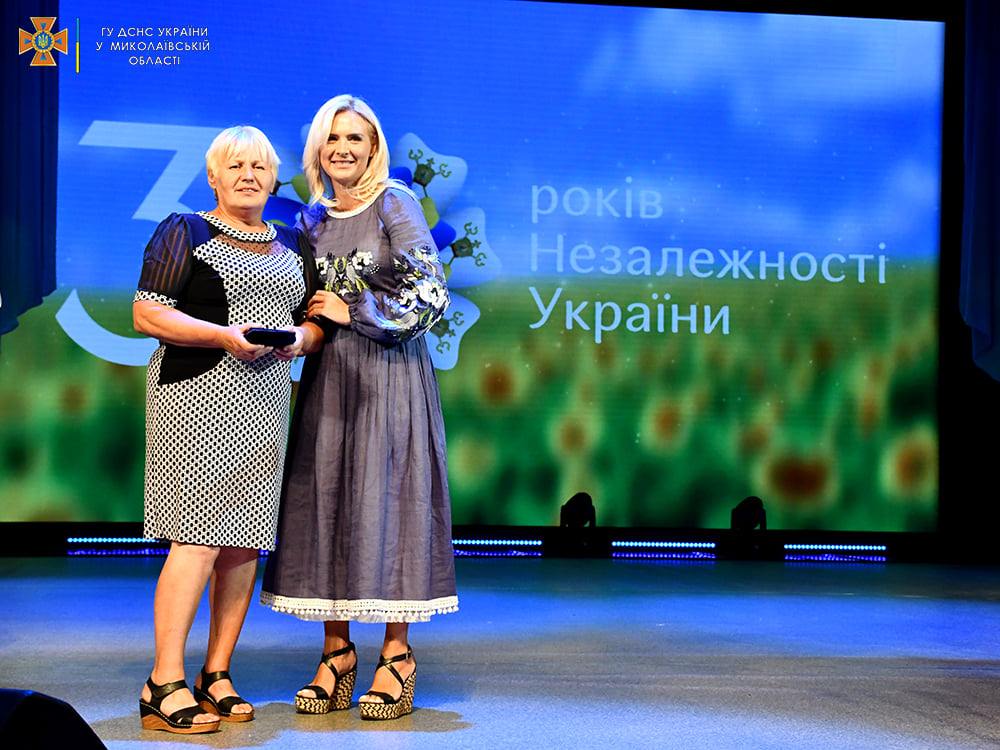 Награду ей вручила в зале Николаевского академического украинского театра драмы и музыкальной комедии во время торжеств по случаю Дня Флага и Дня Независимости глава областного совета Анна Замазеева.