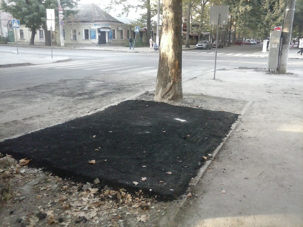 До этого в центре Николаева рабочие, выполнявшие ремонт дорожного покрытия, в очередной раз по самые корни заасфальтировали живые деревья.