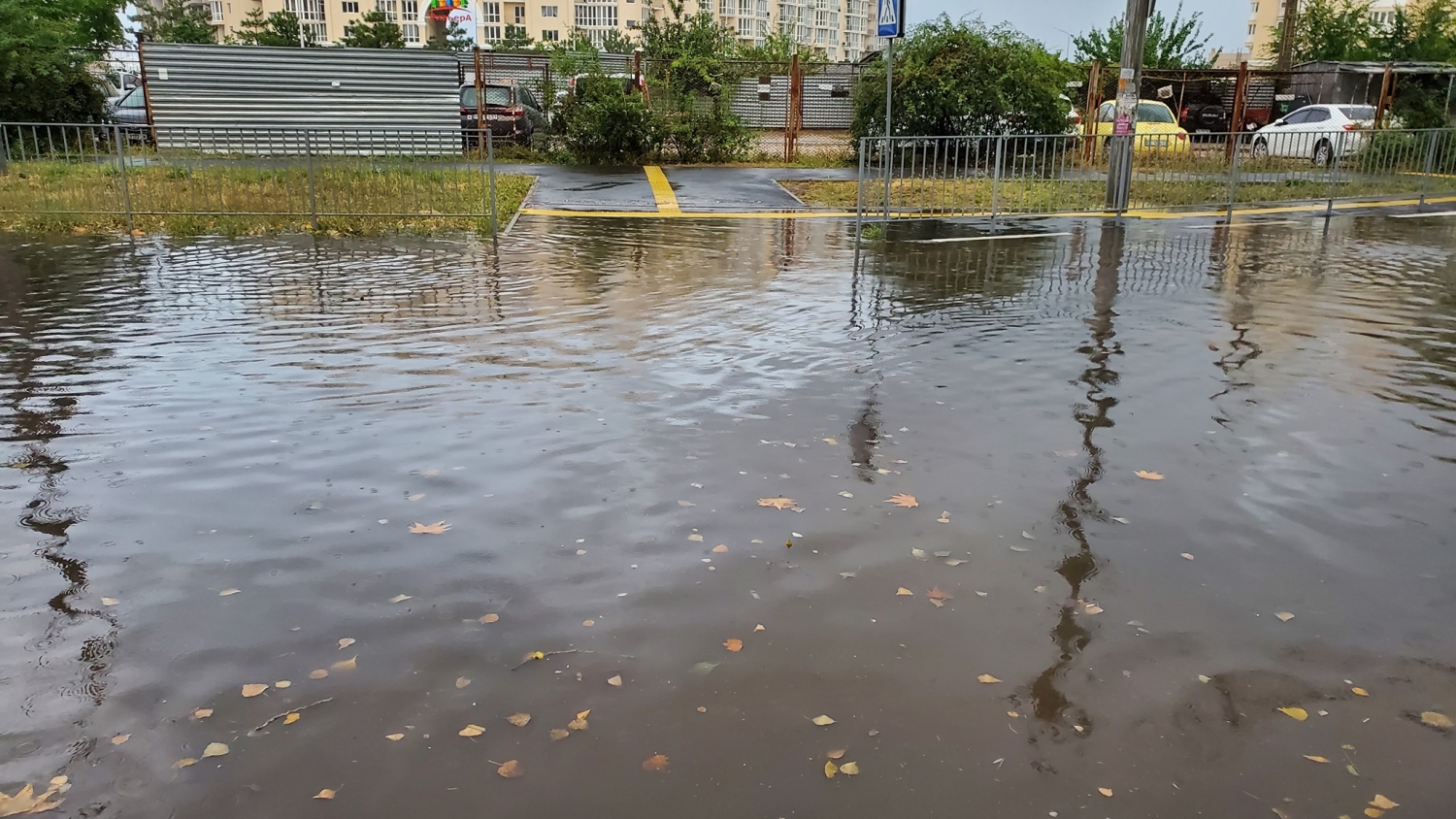 После обильных осадков, которые наблюдались вчера в течение всего дня в Николаеве, на улице Лазурной, 50 образовалось дождевое «озеро». Местные жители посетовали, что так происходит каждый раз после сильных дождей, поскольку здесь нет дождеприемника.