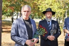 Возложение цветов произошло у памятного знака на роге Богоявленского и Херсонского шоссе, где восемьдесят лет назад нацисты расстреляли больше десяти тысяч евреев. Шалом Готтлиб прочел молитву, а Михаил Гольденберг рассказал об предшествующих событиях.