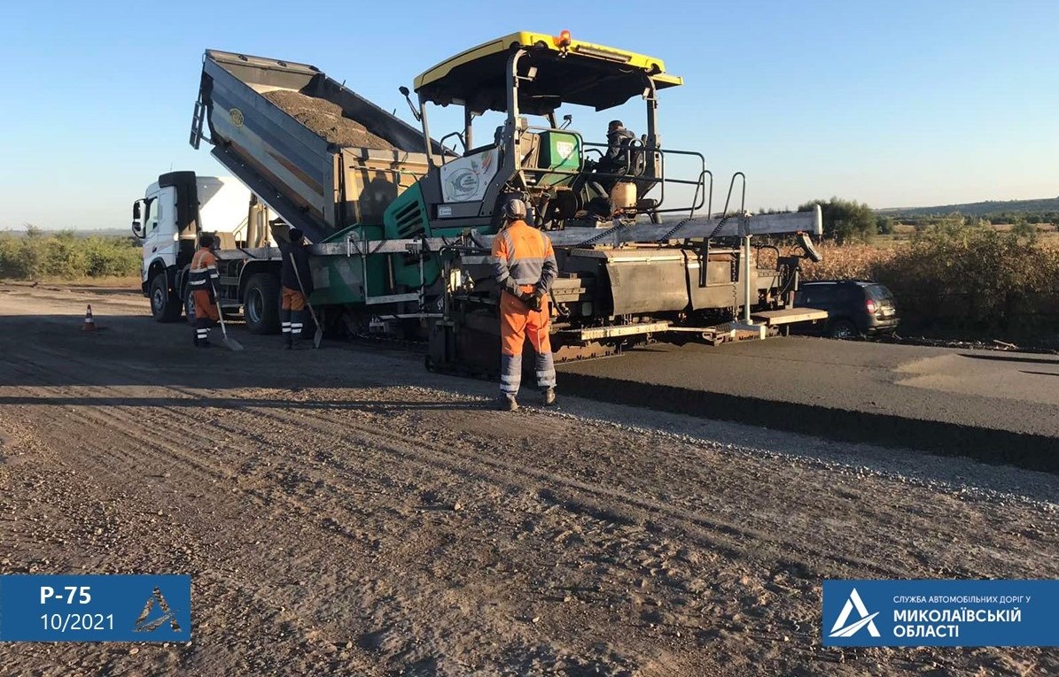 Ремонт 14 километров трассы Доманевка — Александровка вышел на новый этап, между населенными пунктами Кривое Озеро и Березки начались работы по устройству выравнивающего слоя основания из щебеночно-песчаной смеси, обработанной цементом.
