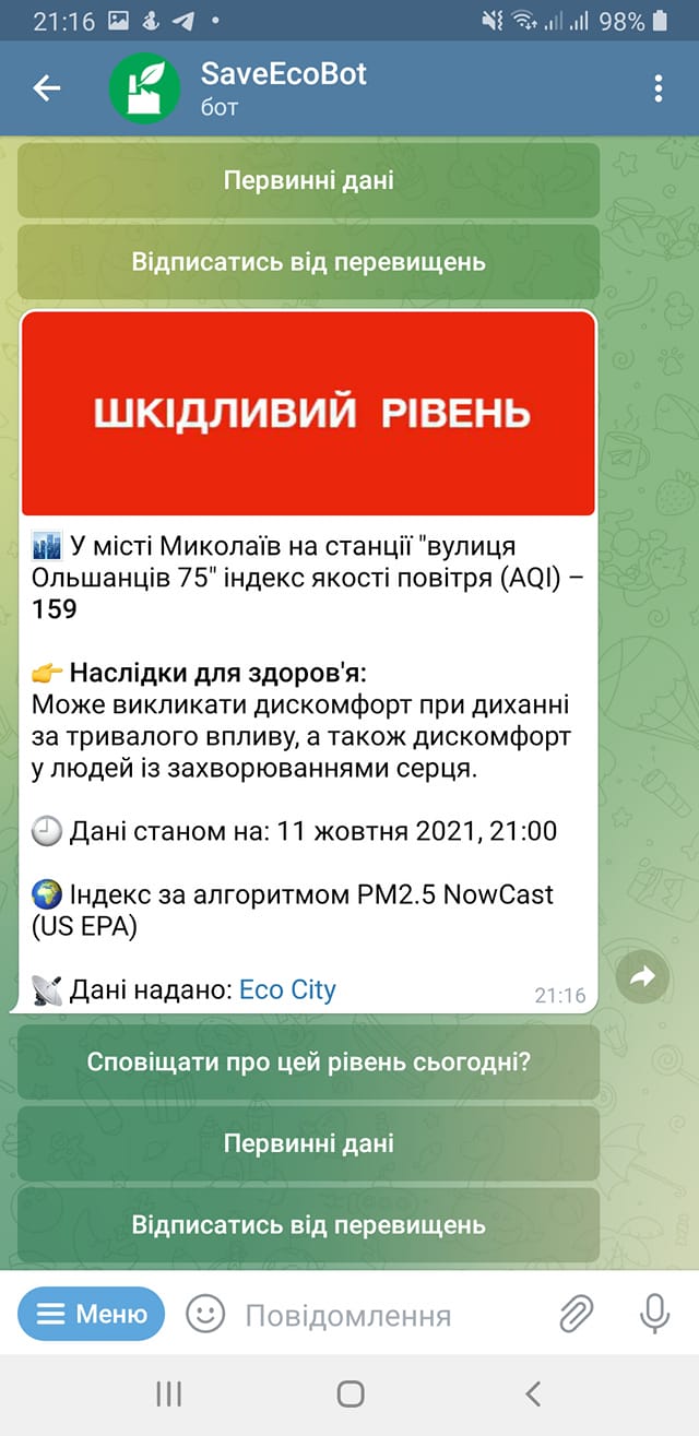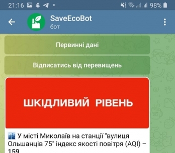 Виктория Шалухина опубликовала данные экологического ресурса «SaveEcoBot» за 11 октября, который показывает данные о загрязнении. Согласно замеров на станции по улице Ольшанцев, 75, индекс качества воздуха достиг 159 - этот показатель относится к категории «вредного».