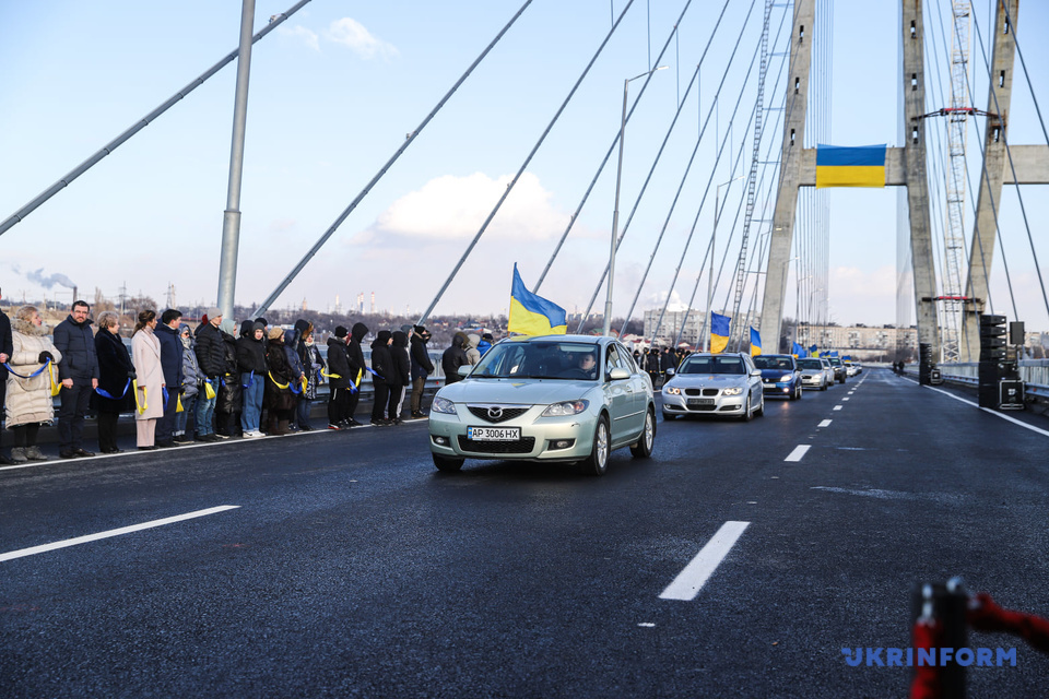В Запорожье Президент Украины Владимир Зеленский открыл первую часть самого большого вантового моста в Украине, который соединил два берега Днепра.