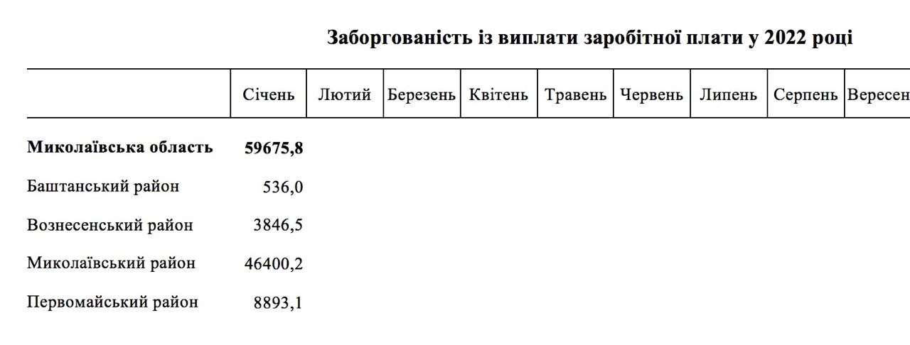 По состоянию на январь 2022 года жителям Николаевщины задолжали 59 миллионов 675 тысяч гривен заработной платы.