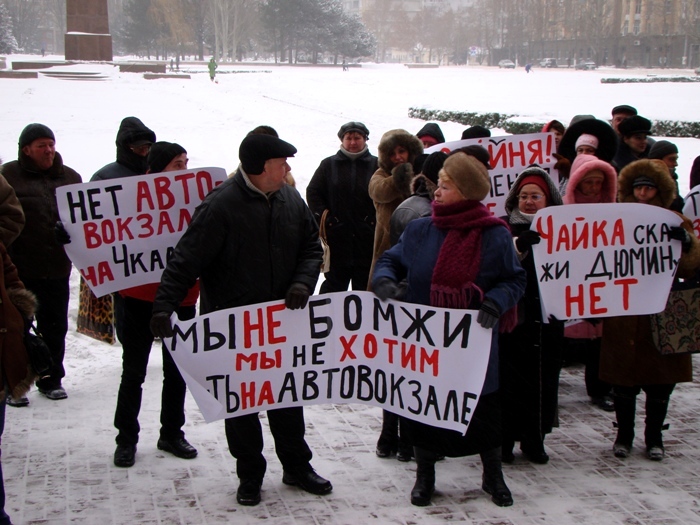 Представитель организации Анатолий Онофрийчук, используя «сирену» и громкоговоритель, озвучил основные требования протестующих. Люди не довольны: 1) произволом депутата-регионала Дюмина, который уничтожает сквер «Украиночка» на пересечении проспекта Ленина и Комсомольской; 2) тем, что завод «Экотранс» травит полгорода; 3) тем, что дочь губернатора Инга Шаповалова посреди проезжей части на улице Чкалова строит автовокзал, и 500 семей будут вынуждены жить буквально на автовокзале.