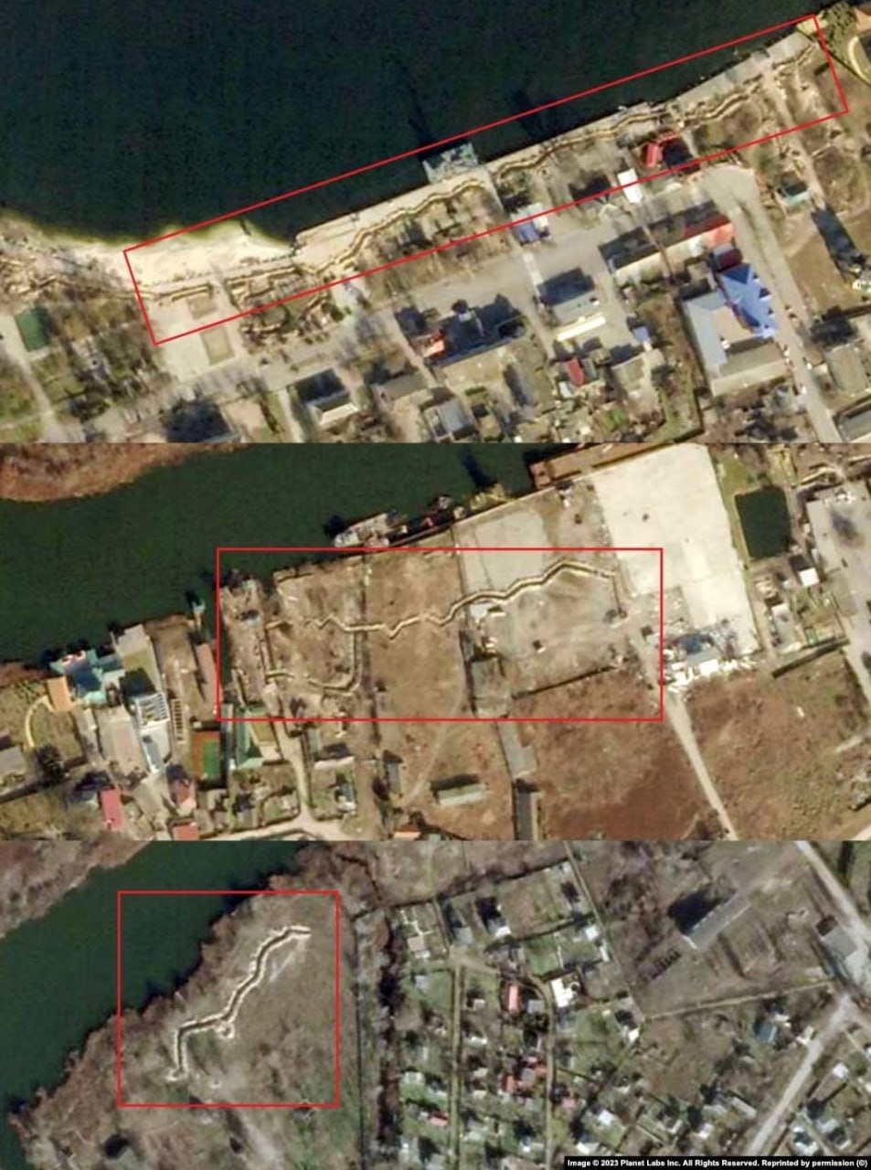 Російська артилерія обстрілює Херсон з міста Гола Пристань на лівому березі Дніпра. Про це свідчать супутникові знімки від 23 лютого, які опублікувало «Радіо Свобода».