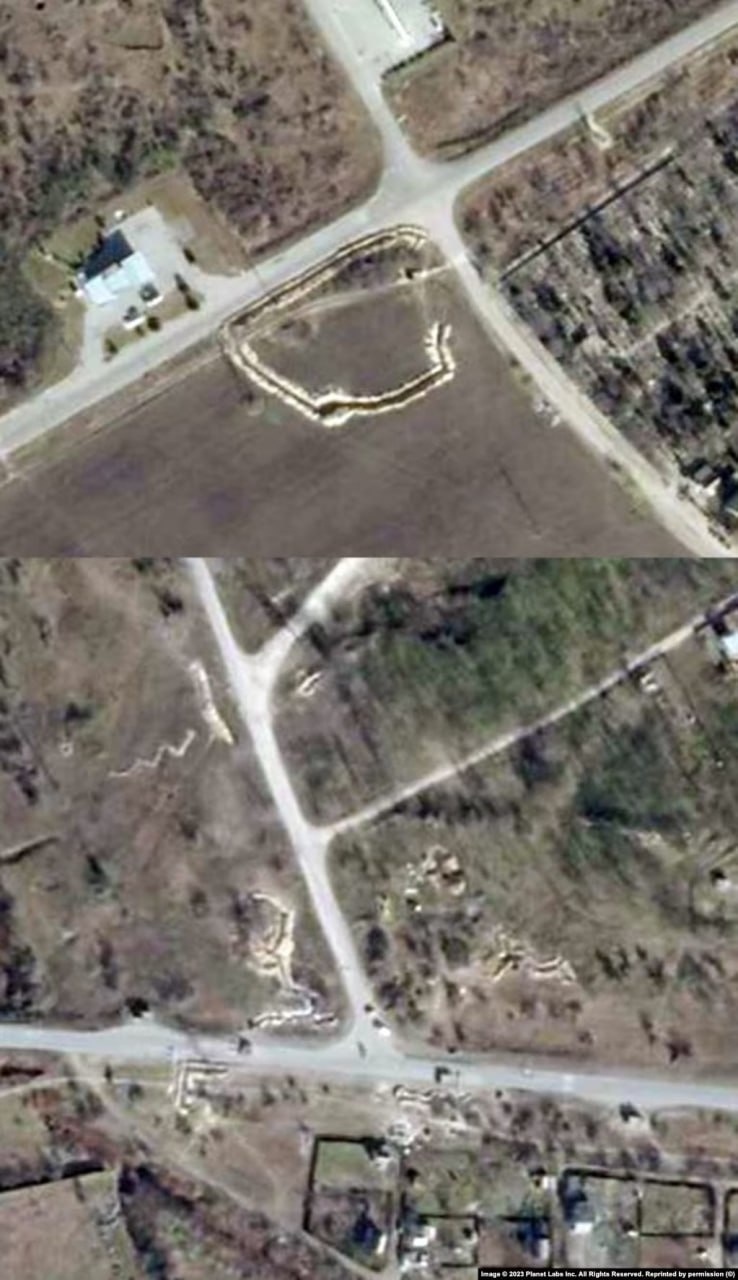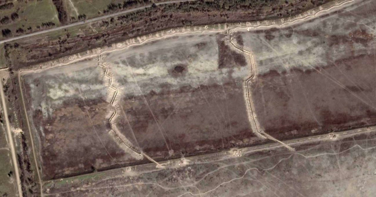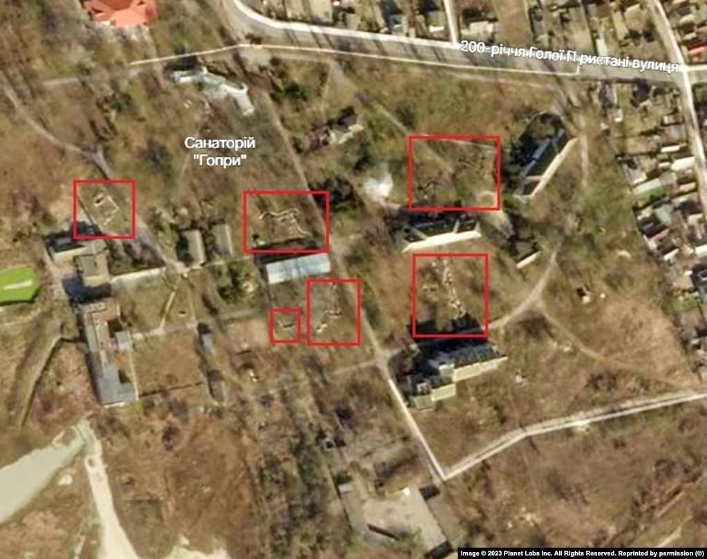 На фото вище можна побачити одну з можливих баз російської армії в санаторії «Гопри». Там окупанти вирили численні окопи та збудували укріплення.