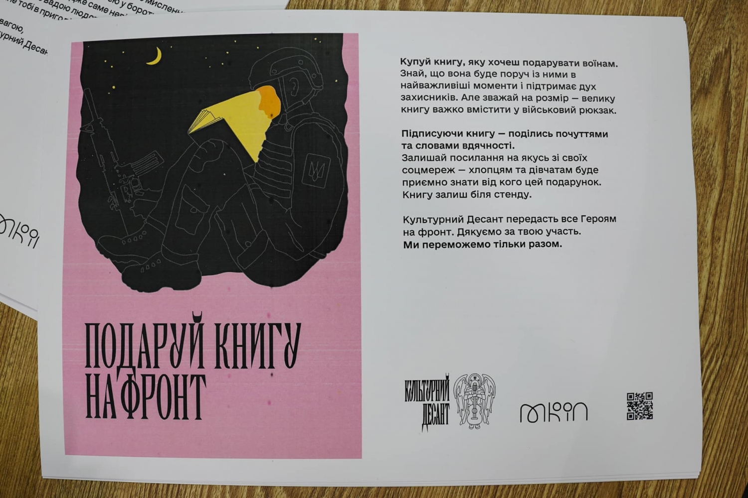Міністерство культури та інформаційної політики України разом із громадською організацією «Культурний десант» та мережами книгарень 11 квітня презентували спільну ініціативу «Книги на фронт».