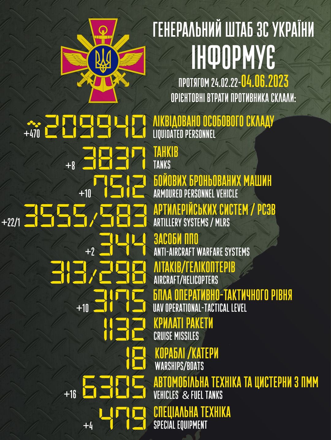Майже 210 тисяч: ЗСУ ліквідували ще 470 окупантів