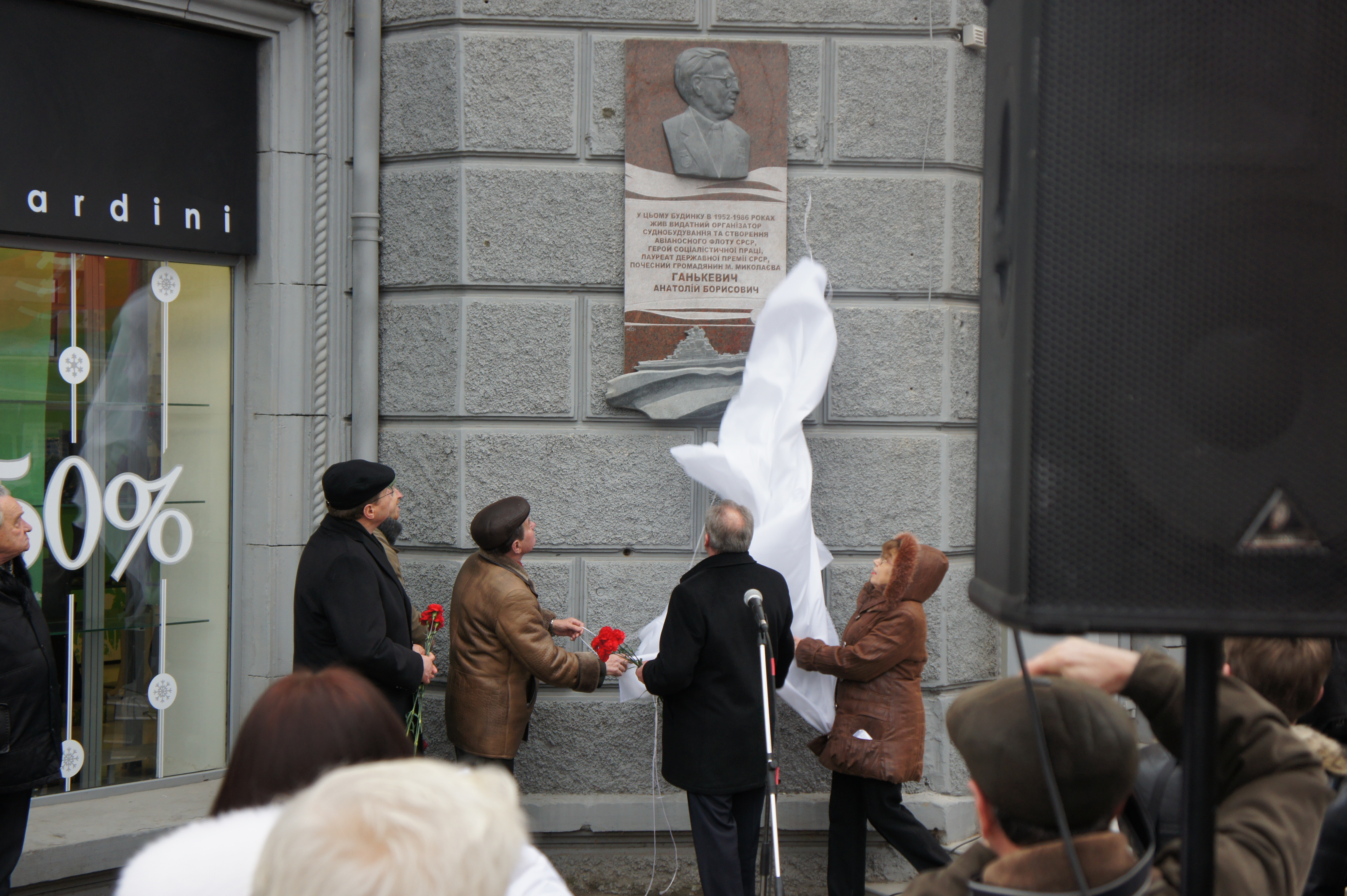 Сегодня, 12 января, на пересечении улиц Советской и Адмиральской было много людей. Виной тому – открытие мемориальной доски, приуроченной к 100-летию выдающегося николаевца, корабела Анатолия Ганькевича.