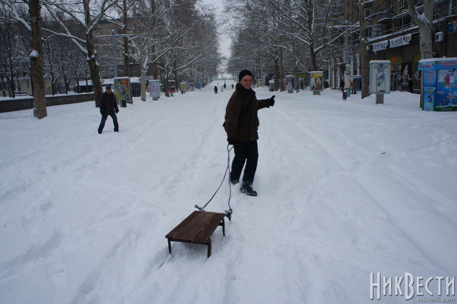 С тротуарами и пешеходными участками улиц в Николаеве существует постоянная проблема. Коммунальные службы отвечают не за все участки пешеходных дорог. Предприниматели должны следить за тротуарами возле своих фирм и магазинов, но разгребают снег только вокруг своих дверей. В итоге - даже главная улица Советская на участке возле Каштанового сквера осталась в снегу.