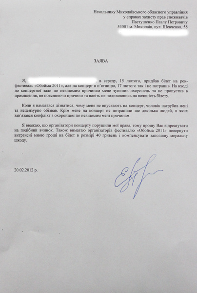 В редакцию «Преступности.НЕТ» обратился николаевец с жалобой на организаторов фестиваля «Обойма 2011».