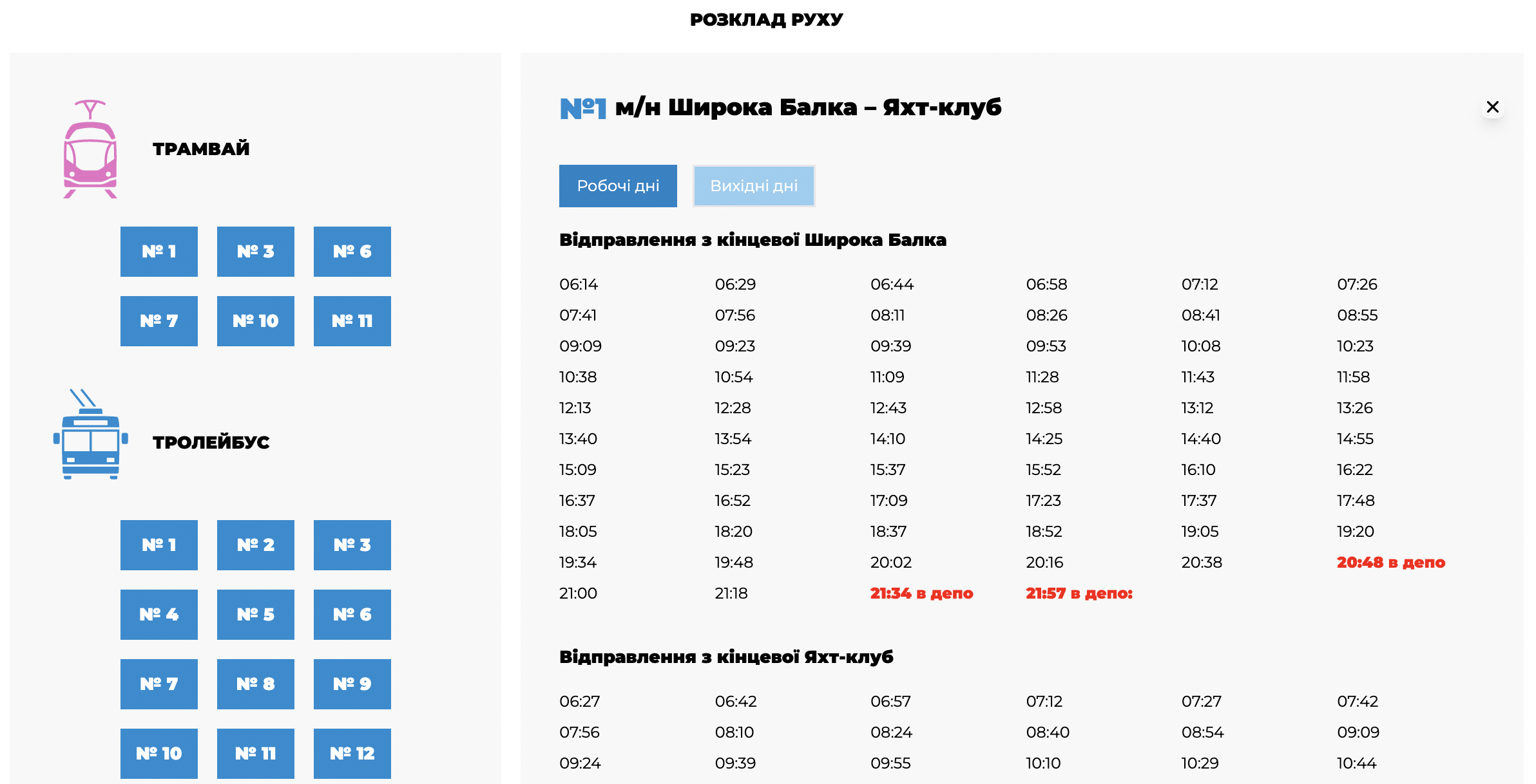 Приклад графіку на сайті «Миколаївелектротрансу», скриншот з офіційного сайту КППриклад графіку на сайті «Миколаївелектротрансу», скриншот з офіційного сайту КП