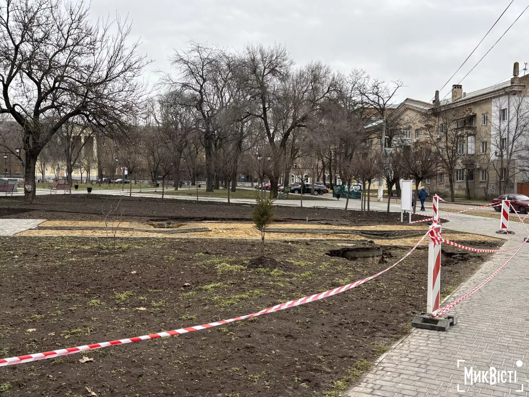 У Миколаєві в сквері «Серце міста» почали ремонтувати плитку, яка просіла після морозів