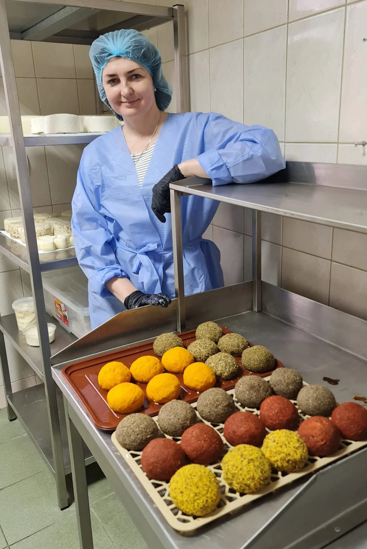 Сироварня працює у Трускавці. Нині там виготовляють понад 50 видів продукції — від бринзи до витриманих сирів із пліснявою. Щотижня переробляють близько тонни молока. У команді — четверо найманих працівників, а також сестра Олени. Допомагають і сини.