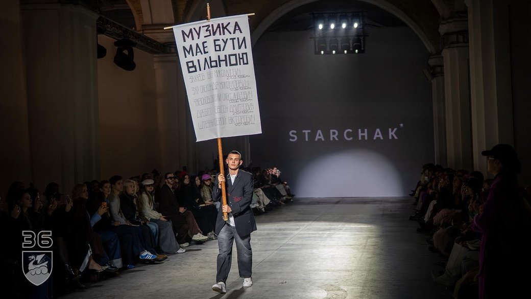 «Марія Старчак підтримала мене і дала можливість провести таку акцію під час презентації колекції, візуалізувавши заклик до боротьби за повернення військовополонених у гаслі «Музика має бути вільною», — зазначив він.