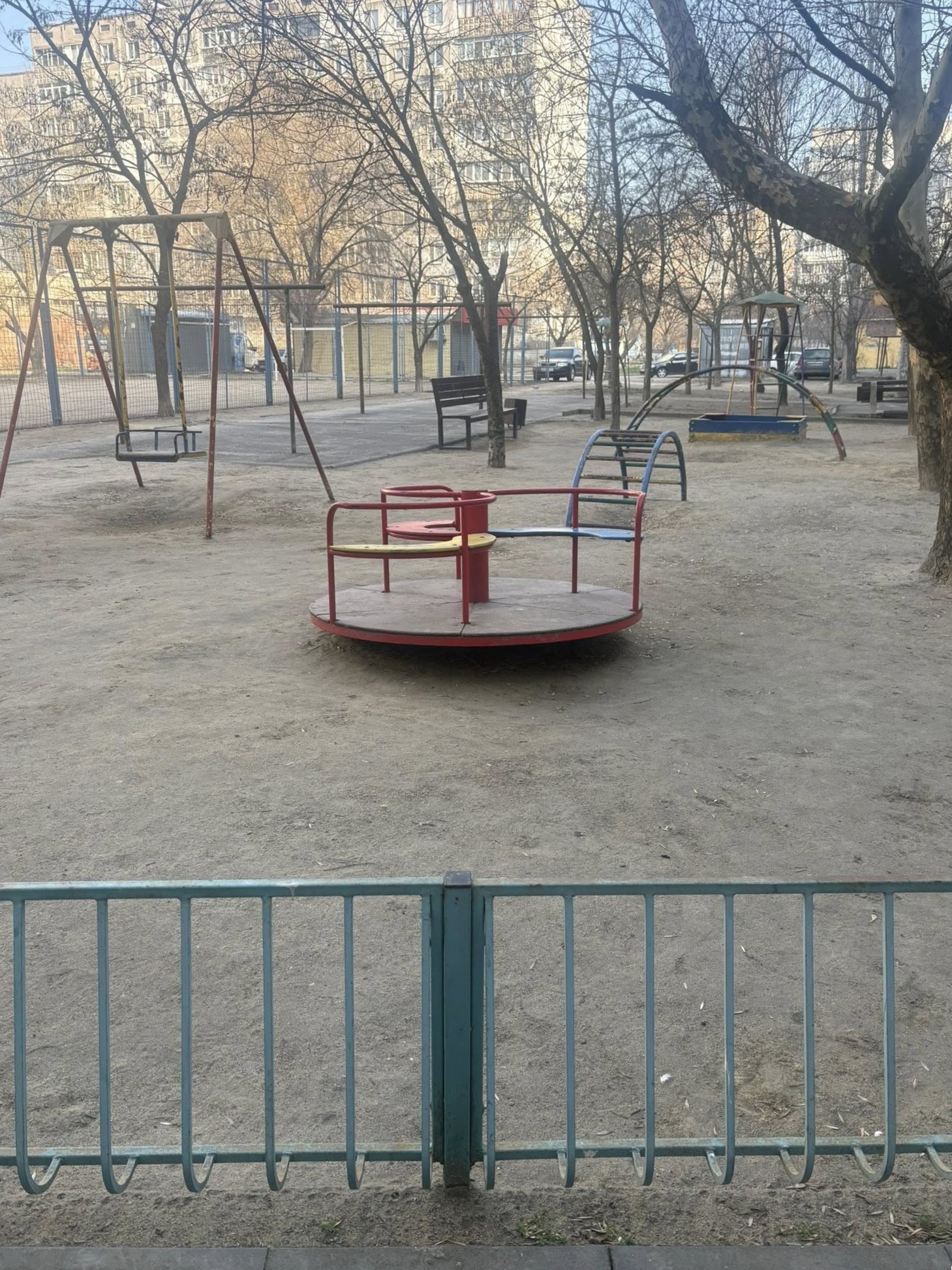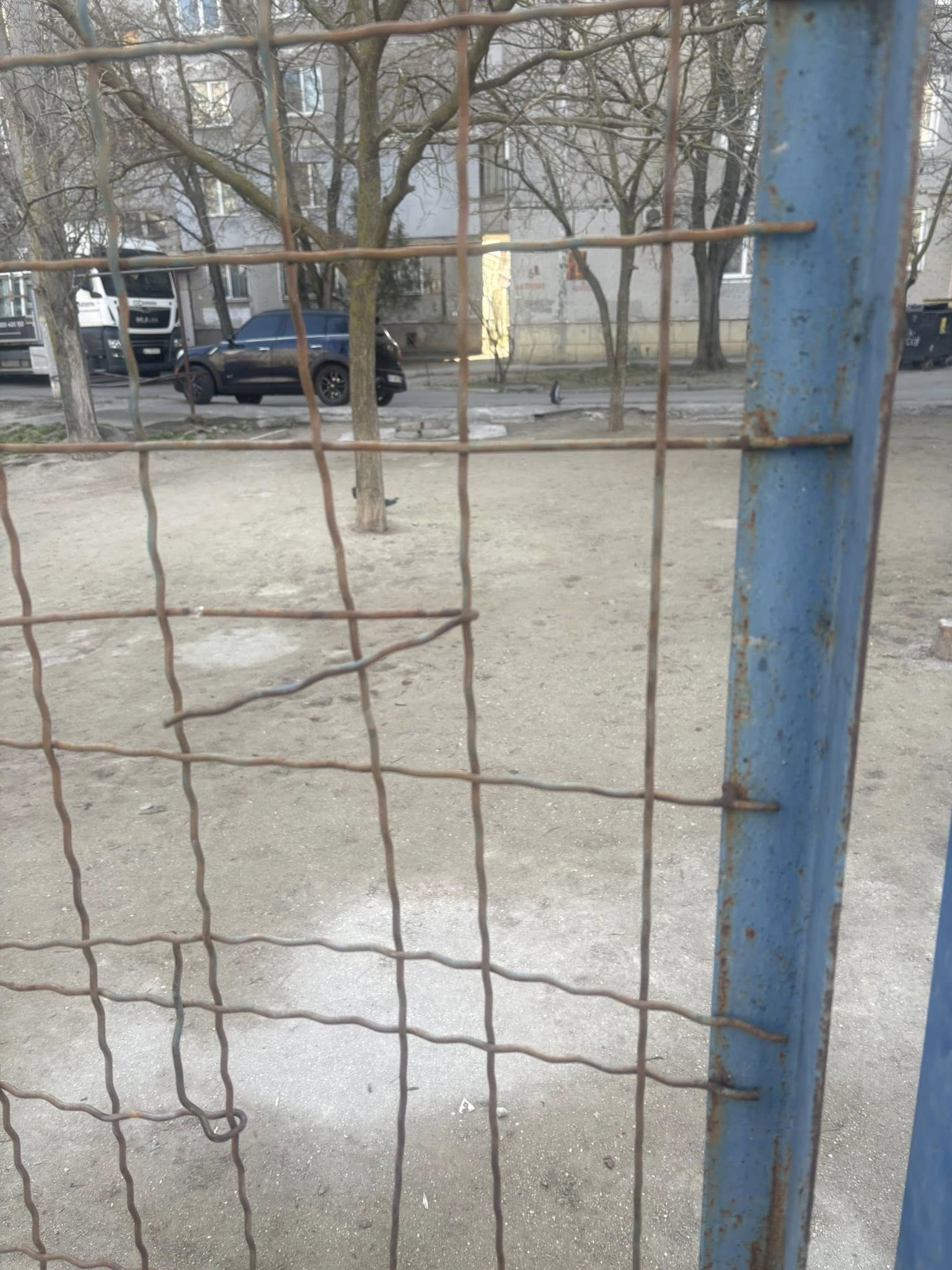 Стирчать прути на спортивному майданчику на вулиці Океанівській.