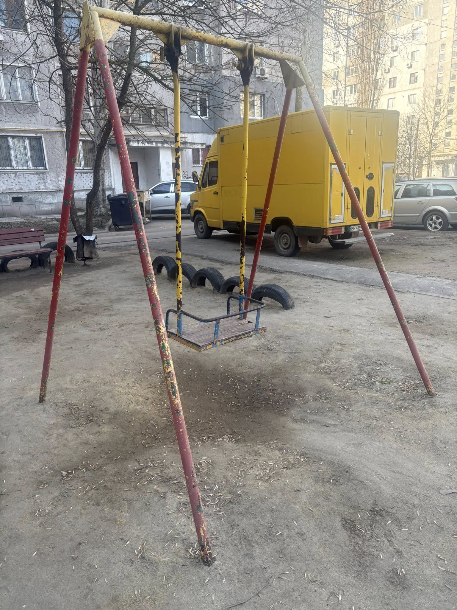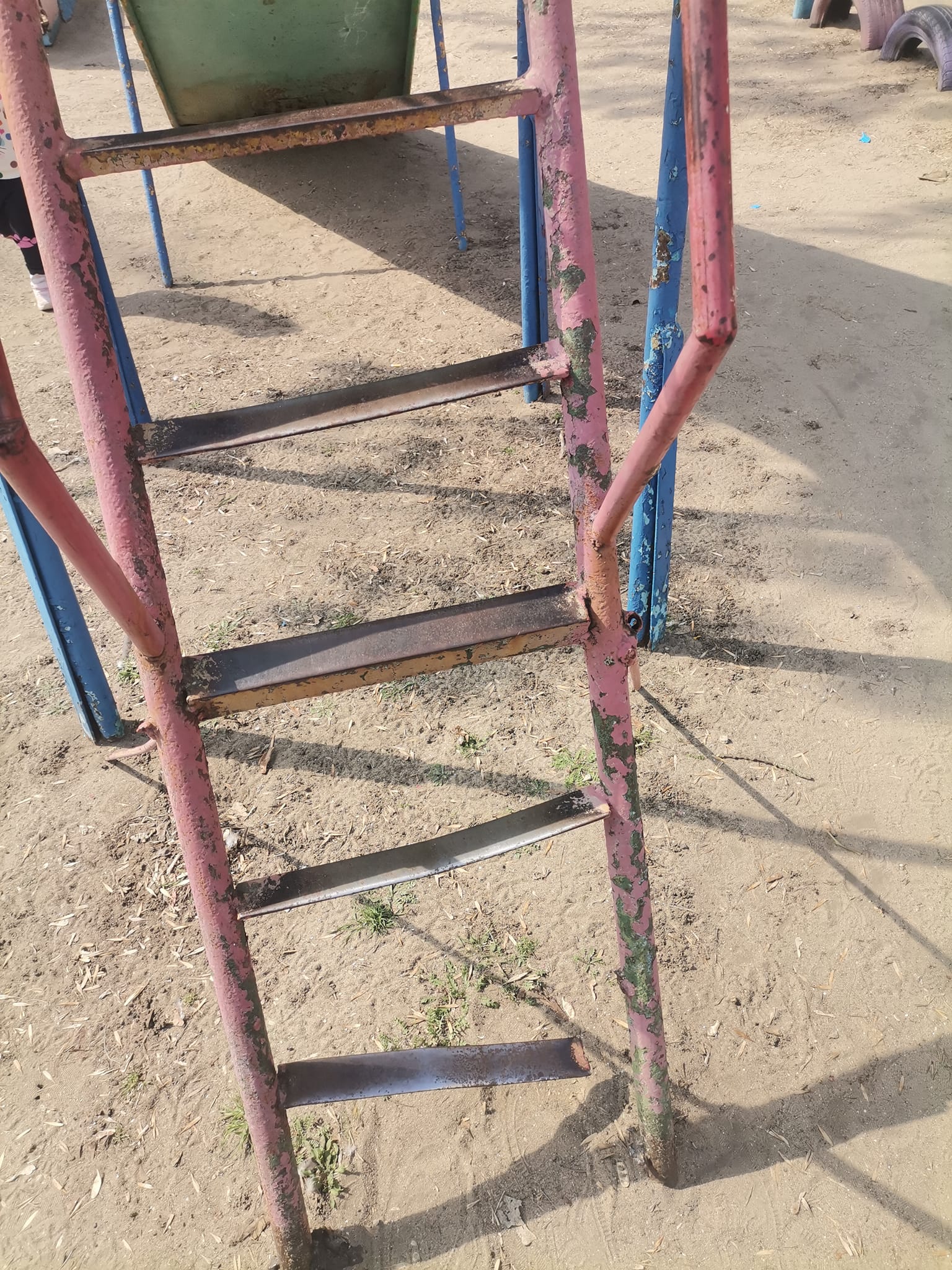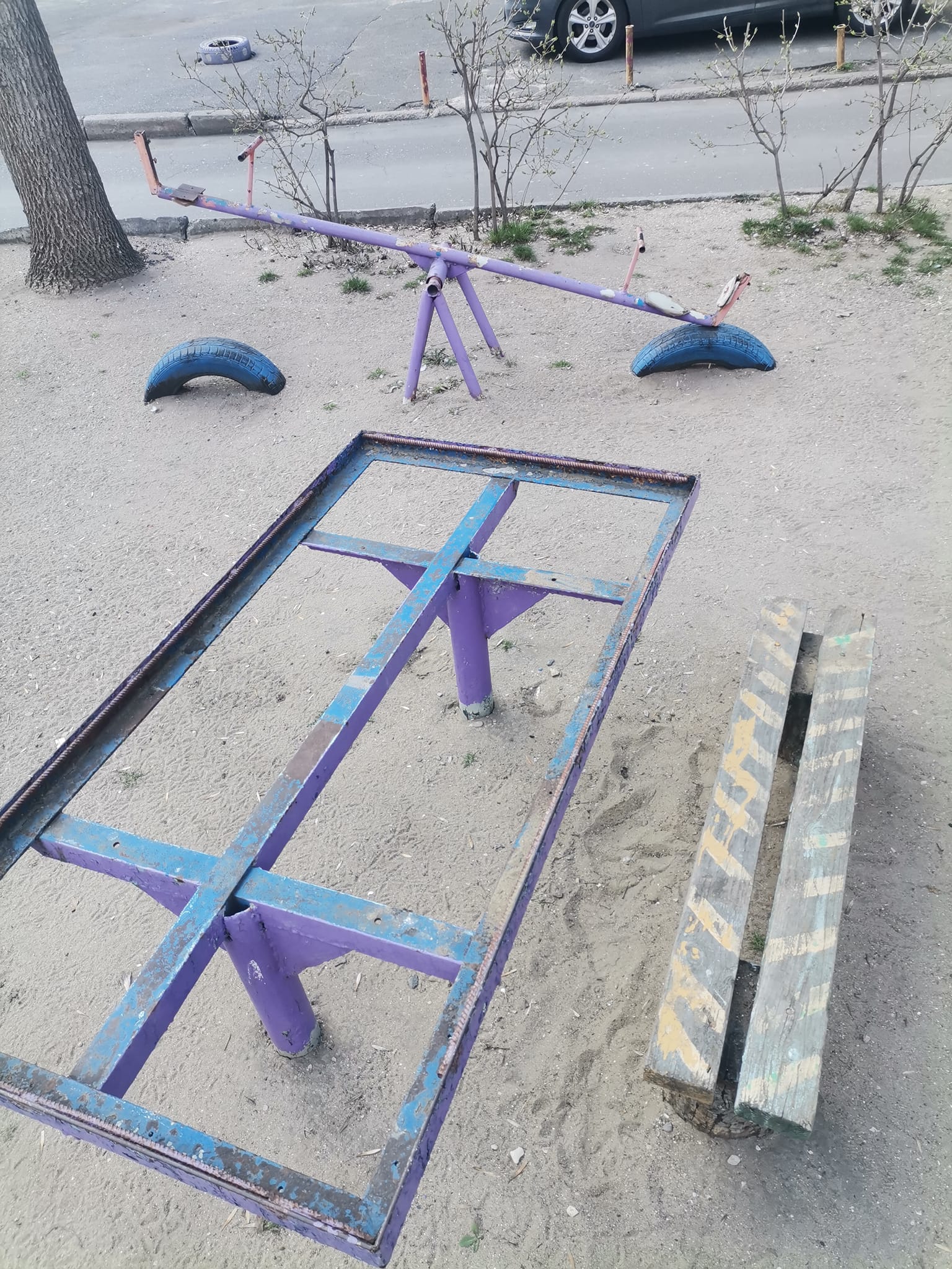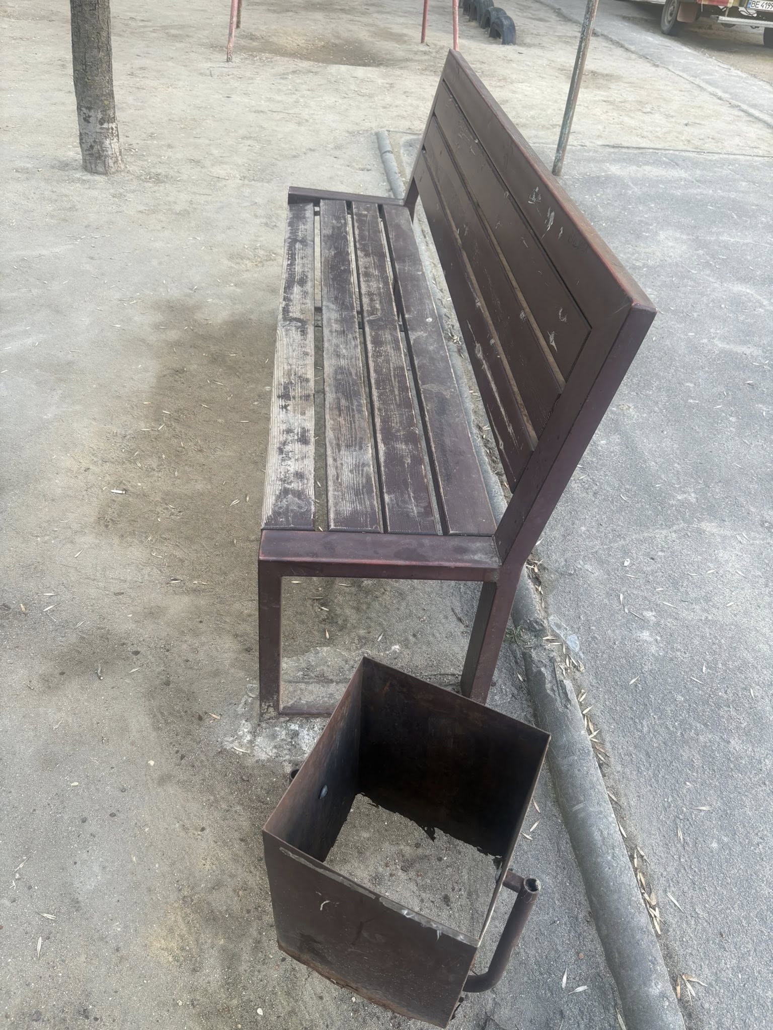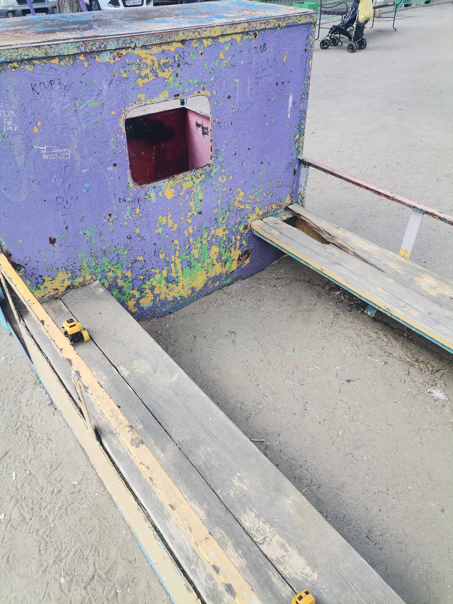 Дитячий майданчик теж просять оновити. Конструкції непофарбовані, у смітниках пробите дно, а у пісочницях майже не залишилося піску.